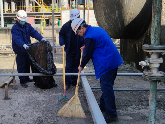 此次活动充分结合安全生产、垃圾分类等重点工作,组织团员青年开展公益性劳动,对公司生产现场溶剂装置区、罐区以及控制室北侧走廊区域进行全面清洁。