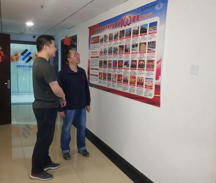 党史学习教育深入开展以来,化研院在自己的官方微信公众号上开辟“每周一学一答”活动专栏,使干部职工在公众号上每次完成相关党史知识学习后,再完成5道答题,以引领党员干部职工学党史、悟思想,积极营造学习党史的浓厚氛围。此外,化研院党总支在华腾科技大厦五层张贴“党的百年历史简图”,营造学习党史浓厚氛围。