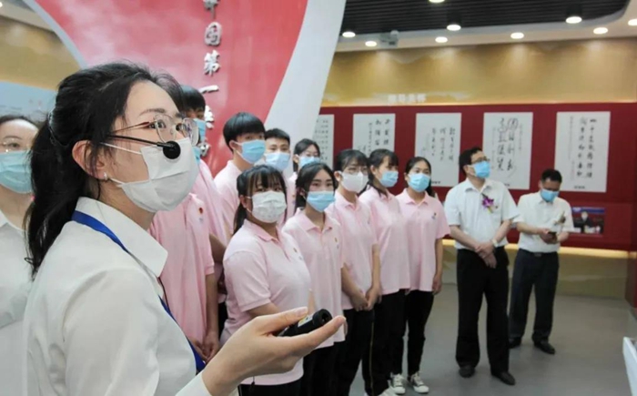 揭牌仪式后,校企双方参观了中核矿业科技展览馆和分析测试中心,同学们在赞叹自豪之余,倍受振奋鼓舞。有的说,伟大成就中凝聚了先辈坚定的理想信念,不畏艰难、敢于担当、勇往直前的奋斗精神……有的说,从中感受到国家的发展腾飞离不开“工匠精神”,我能做的就是要努力学习技术技能,以实际行动弘扬践行“工匠精神”……有的说,对历史学习越多、了解越多,越加深了自己对“学史增信”的理解……